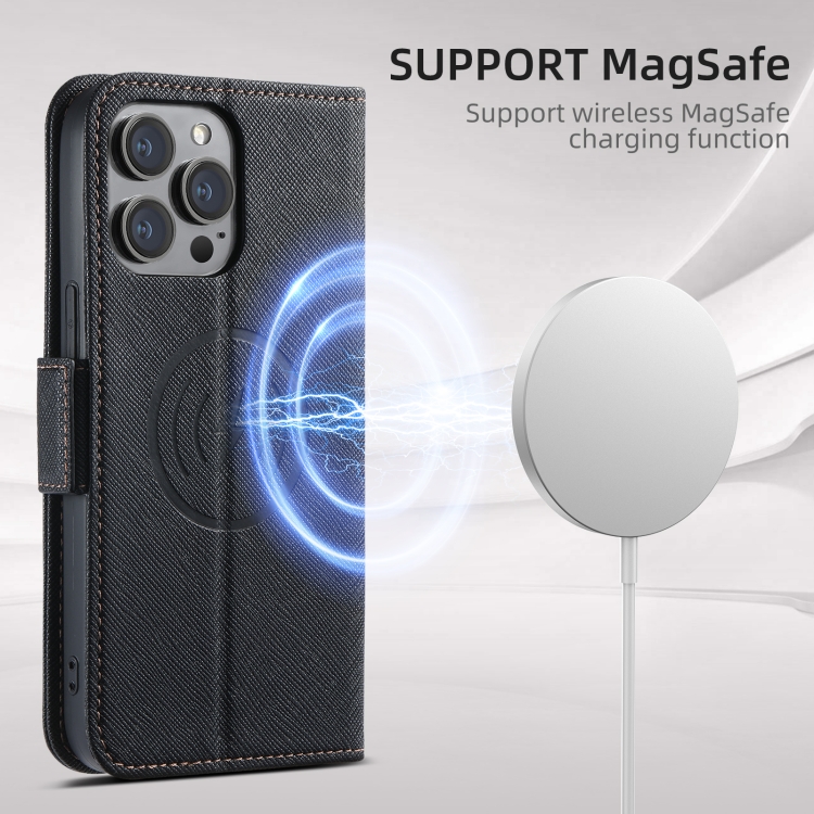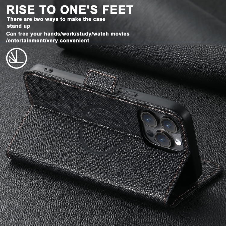 Funda de Cuero Suteni J08 para iPhone 16 Pro con Textura Cruzada y Soporte (Negro)