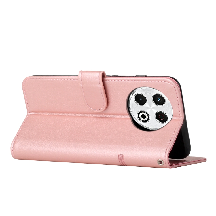Funda de Cuero Textura Becerro con Hebilla para Tecno Spark 30 Pro (Oro Rosa)