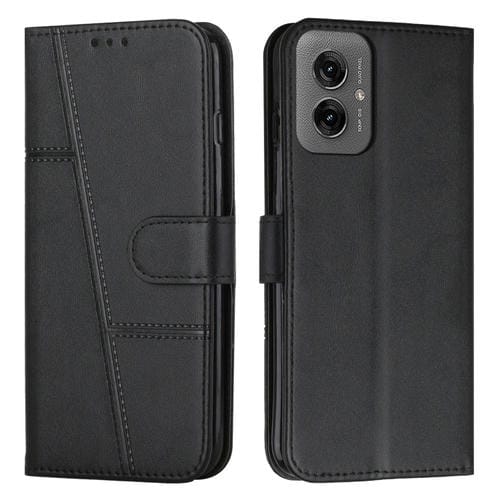 Funda de Cuero con Textura de Becerro y Costuras para Motorola Moto G55 (Negro)