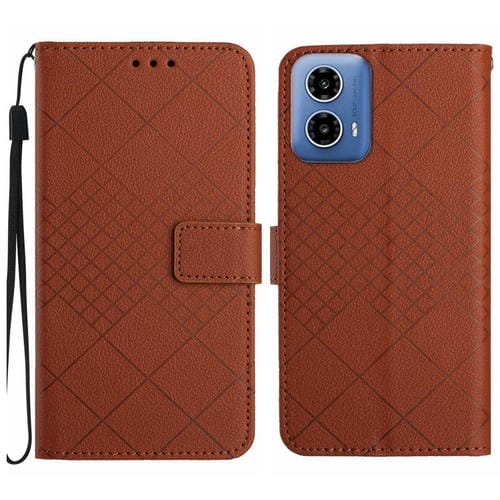 Funda de Cuero Motorola Moto G35 5G con Textura de Cuadrícula Rómbica (Marrón)