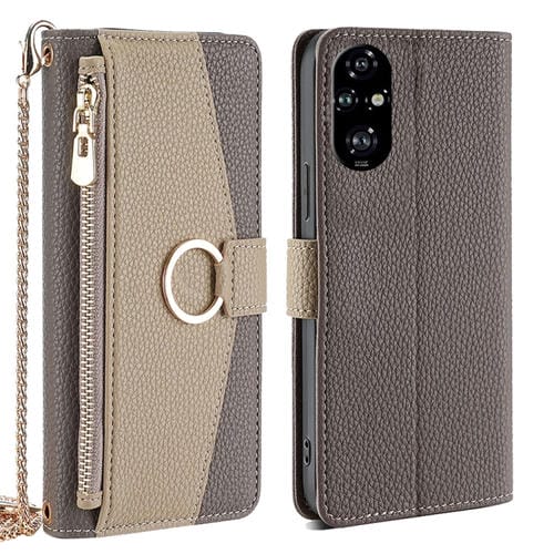 Funda de Cuero con Textura de Lichi y Diseño Cruzado para Honor 200 Pro 5G (Gris)