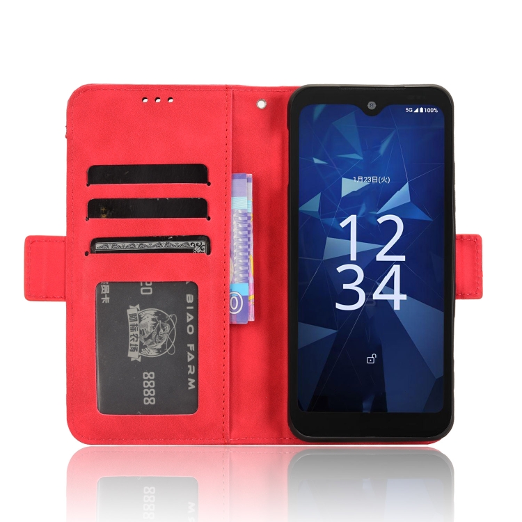 Funda de Cuero Textura Piel de Becerro para Kyocera Digno Sx4 con Ranuras para Tarjetas (Rojo)