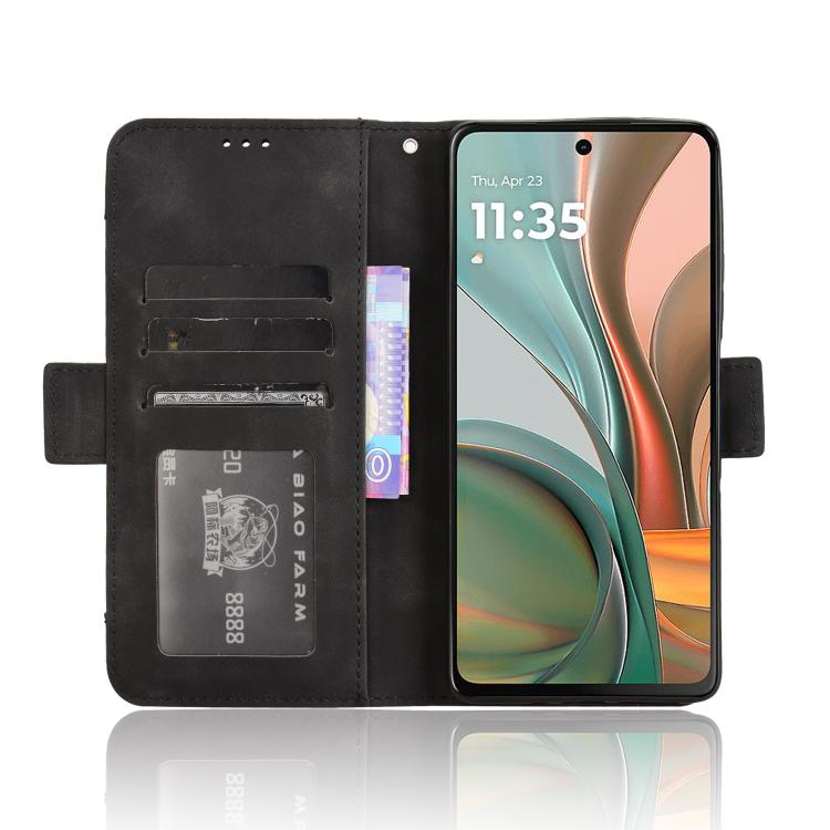 Funda de Piel con Textura de Becerro y Ranuras para Tarjetas Motorola Moto G75 5G (Negra)