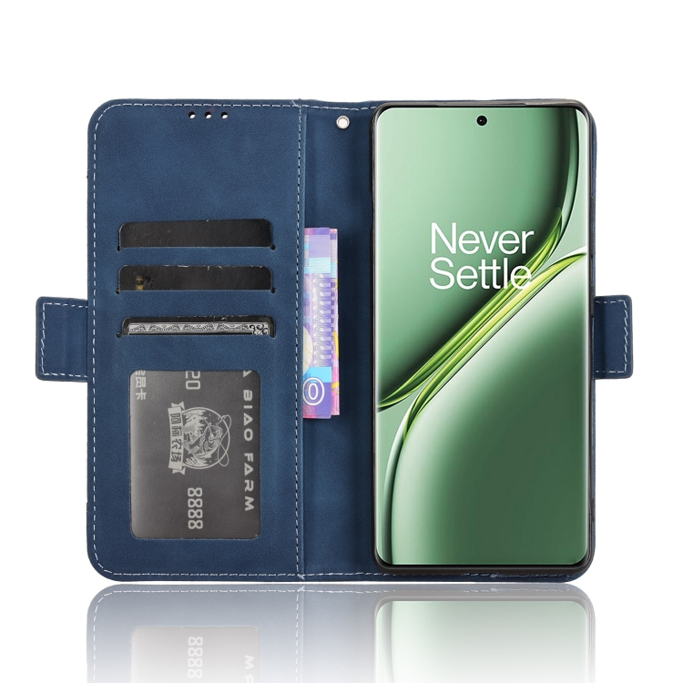 Funda de Cuero con Textura de Piel de Becerro y Ranuras para Tarjetas para OnePlus Ace 3 Pro (Azul)
