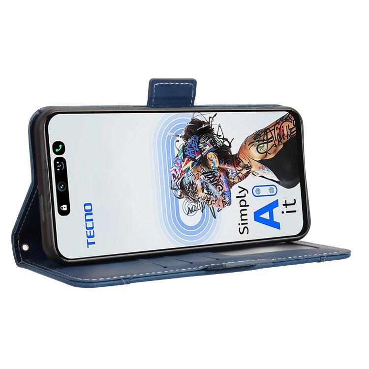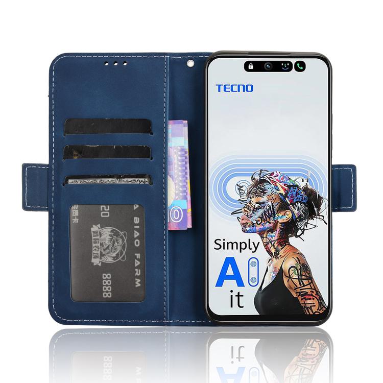 Funda de Cuero con Textura de Piel de Becerro y Ranuras para Tarjetas para Tecno Pova 6 Neo 5G/Spark 30 5G (Azul)
