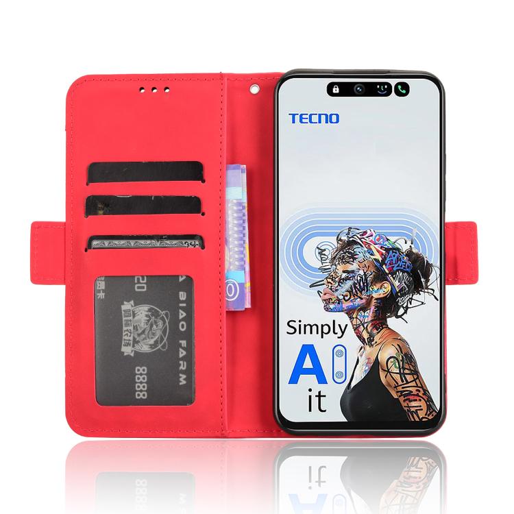 Funda de Cuero con Textura de Piel de Becerro para Tecno Pova 6 Neo 5G Spark 30 5G (Rojo)