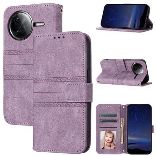 Funda de Cuero con Textura de Piel de Serpiente con Rayas En Relieve para Redmi K80 5G/K80 Pro 5G (Morado Claro)