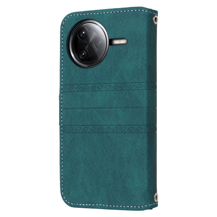 Funda de Cuero con Textura de Piel de Serpiente con Rayas En Relieve para Redmi K80 5G/K80 Pro 5G (Verde Oscuro)