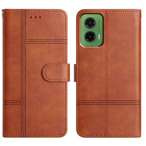 Funda de Cuero con Textura Piel de Vaca y Costuras para Motorola Moto G35 (Marrón)