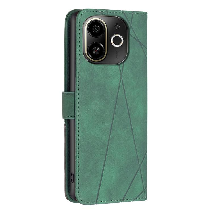 Funda de Cuero para Tecno Pop 9 5G y Spark 30C 5G con Textura de Rombos y Hebilla Magnética (Verde)