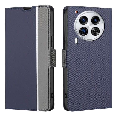 Funda de Cuero con Textura de Sarga y Botones Laterales para Tecno Camon 30 Premier 5G (Azul)