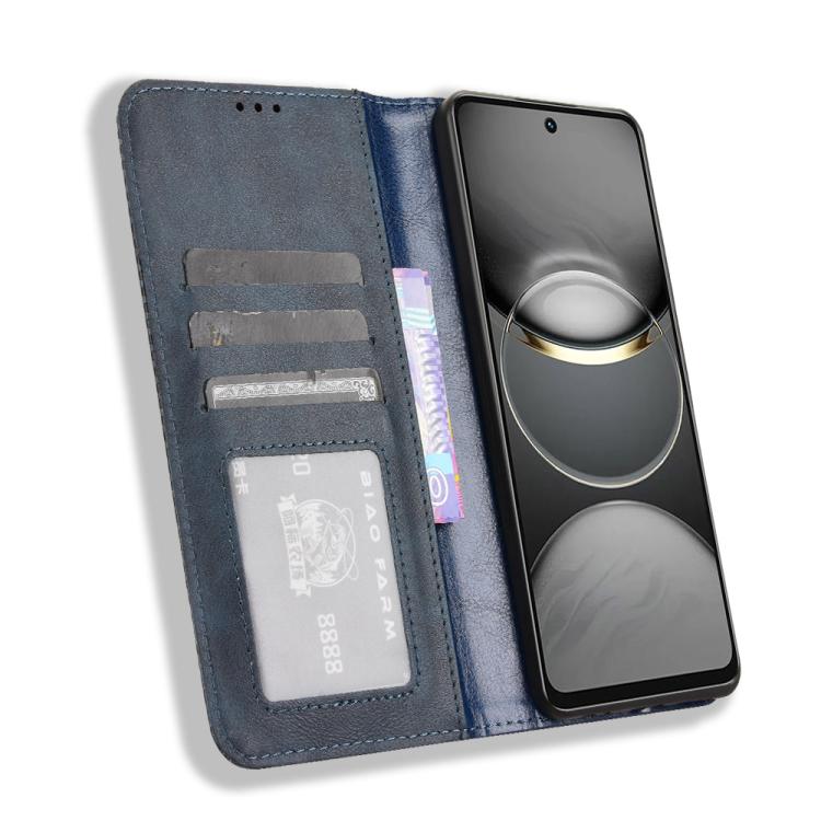 Funda de Cuero con Textura Retro y Hebilla Magnética para Tecno Spark 30 4G (Azul)