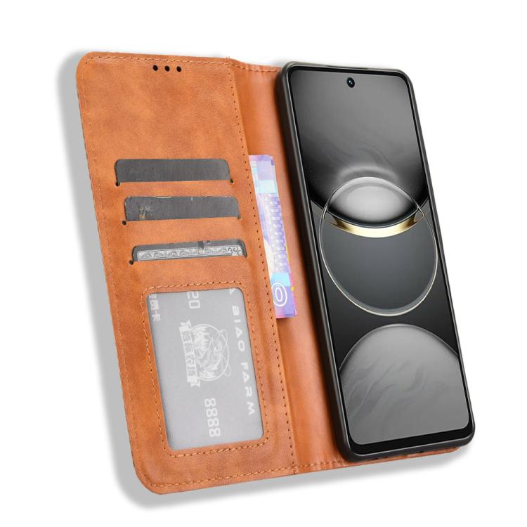 Funda de Cuero para Tecno Spark 30 4G con Textura Retro y Hebilla Magnética (Marrón)