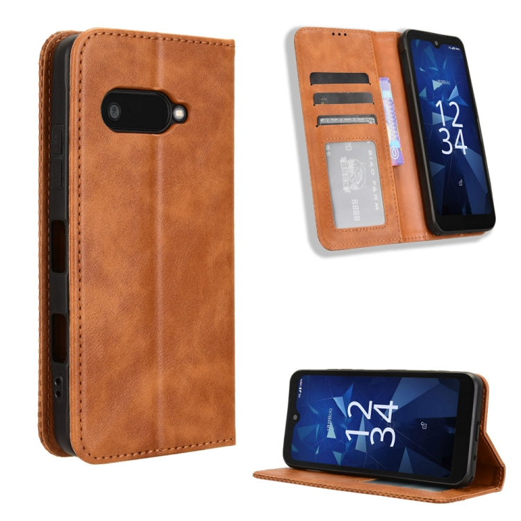 Funda de Cuero Kyocera Digno Sx4 con Textura Retro y Hebilla Magnética (Marrón)