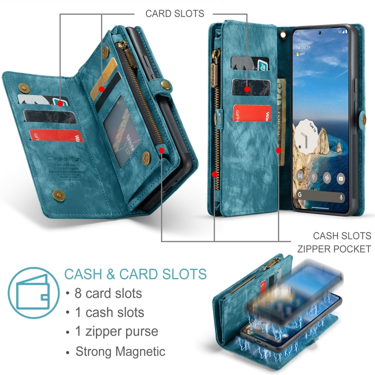 Funda de Cuero Desmontable Multifuncional Caseme 008 para Google Pixel 9 y 9 Pro (Azul)