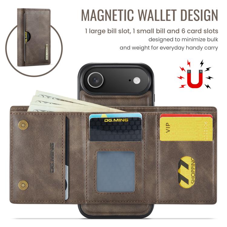Funda de cuero extraíble para iPhone Air DG.MING M6 Series RFID con tres pliegues para tarjetas (café)
