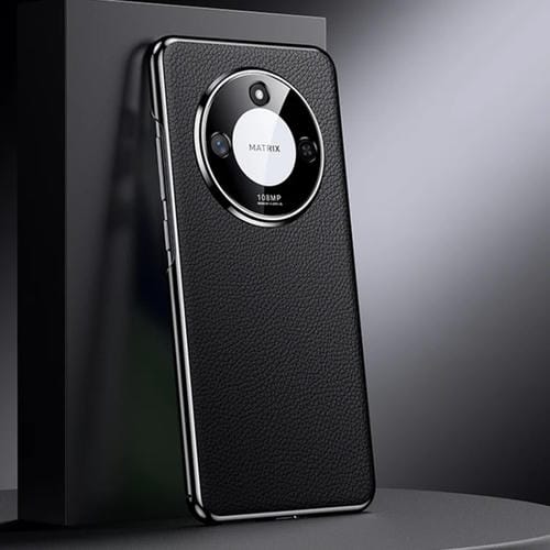 Funda de Cuero Genuino con PC para Honor X60 (Negro)