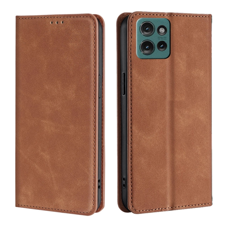 Funda de Cuero Magnética con Tacto de Piel para Motorola Edge 50 5G (Marrón Claro)