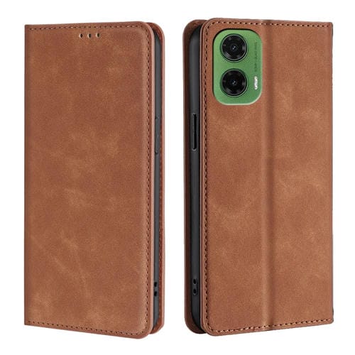 Funda de Cuero Magnética con Tacto de Piel para Motorola Moto G35 5G (Marrón Claro)