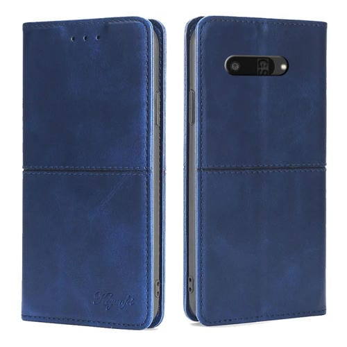 Funda de Cuero Magnética con Textura de Vaca para Kyocera Digno Sx4 5G (Azul)