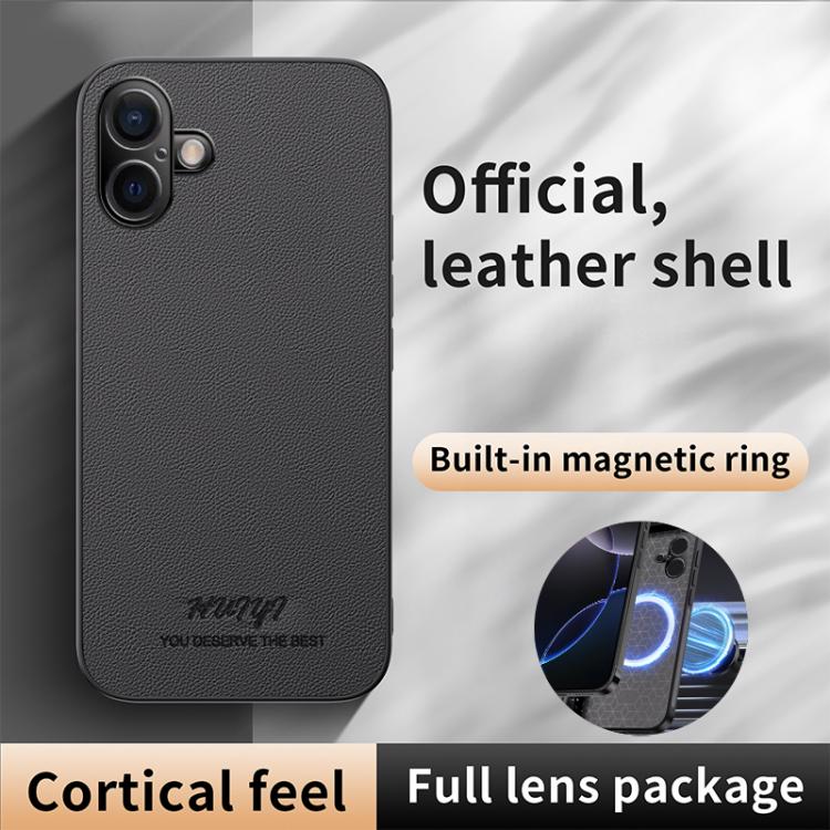 Funda Cuero Magnética Huiyi para iPhone 16 Plus (Blanca)