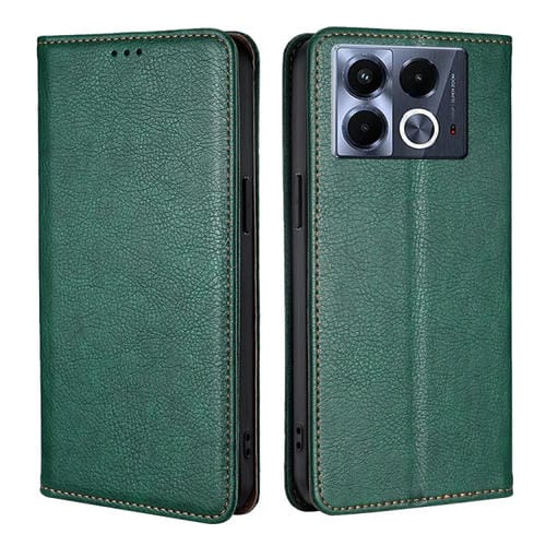 Funda de Cuero Magnética para Infinix Note 40 5G con Acabado Brillante y Aceite Sólido (Verde)