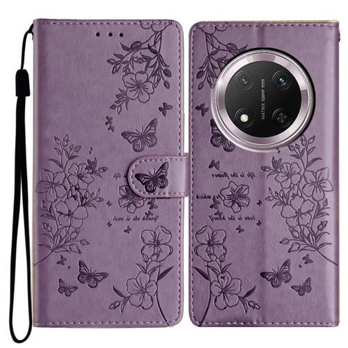 Funda de Cuero para Honor X9C con Mariposas y Flores (Morada)