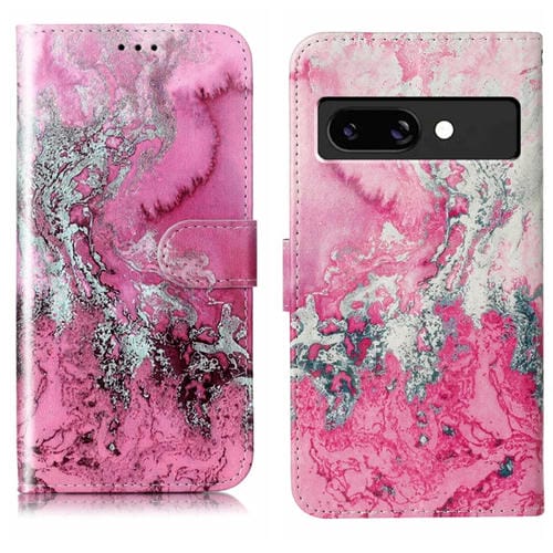 Funda de Cuero para Google Pixel 9A con Patrón de Mármol y Dibujo de Colores (Agua de Mar Rosa)