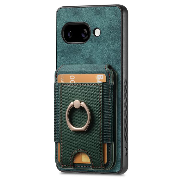 Funda de Cuero para Google Pixel 9A con Soporte Magnético Divisible Retro (Verde)