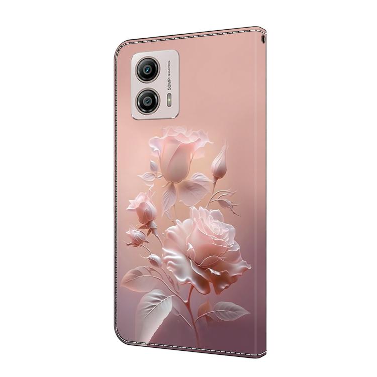 Funda de Cuero Pintada a Mano Motorola Moto G53 5G con Flores de Cerámica