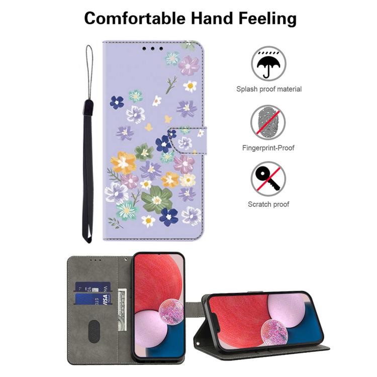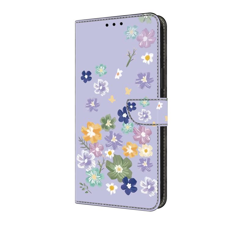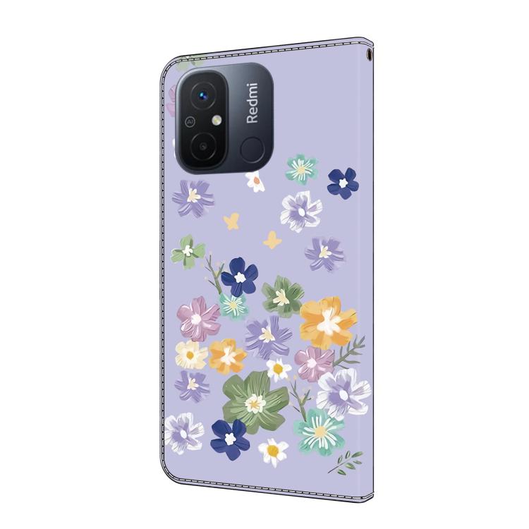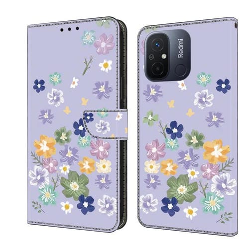 Funda de Cuero Pintada a Mano para Redmi 12C/11A (Floral Morado)