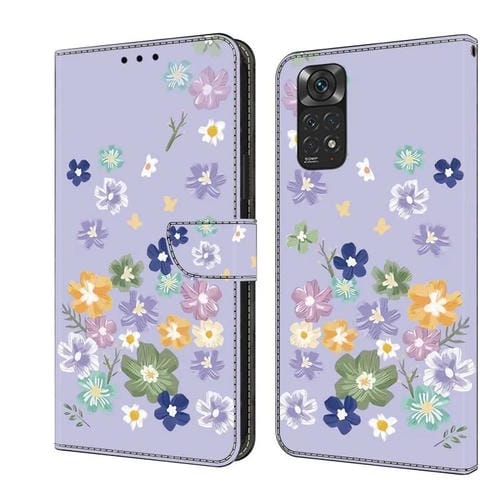 Funda de Cuero Pintada a Mano para Redmi Note 11/11S (Floral Morado)