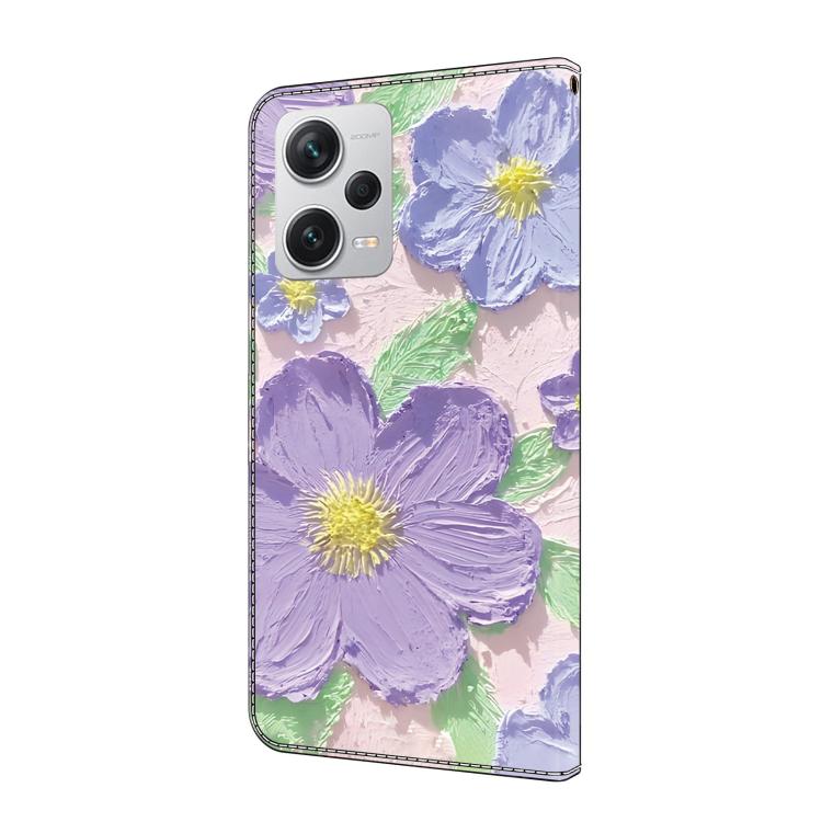 Funda de Cuero Pintada a Mano para Redmi Note 12 Pro+ (Pintura al Óleo de Flores Moradas)