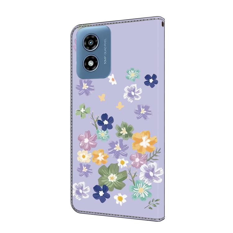 Funda de Cuero Pintada a Mano Motorola Moto G Play 2024 (Floral Morado)