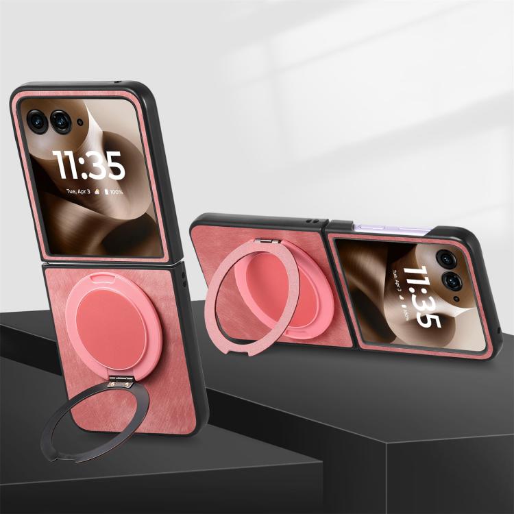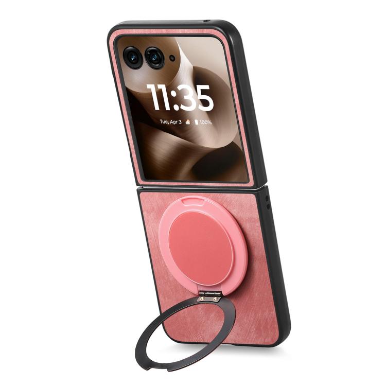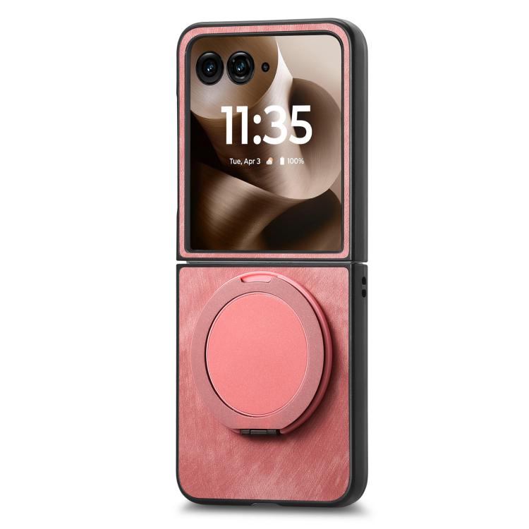 Funda de cuero retro con soporte giratorio para Motorola Moto Razr 60 Ultra (rosa)