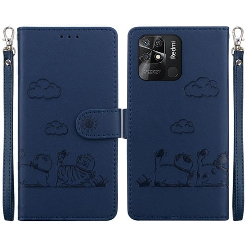 Funda de Cuero Rfid con Diseño de Gatos para Redmi 10C (Azul)