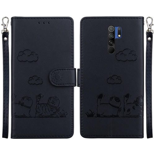 Funda de Cuero Rfid con Diseño de Gatos para Xiaomi Poco M2 (Negra)