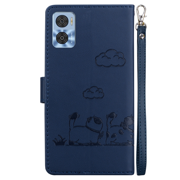 Funda de Cuero Rfid para Motorola Moto E22/E22I con Diseño de Gatos (Azul)