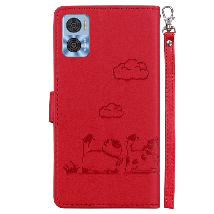 Funda de Cuero Rfid para Motorola Moto E22/E22I con Diseño de Gatos (Rojo)
