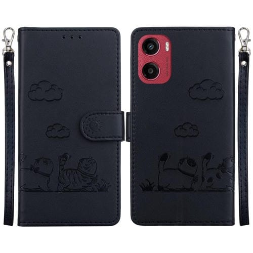 Funda de Cuero Rfid para Motorola Moto G05/E15 con Diseño de Gatos (Negra)