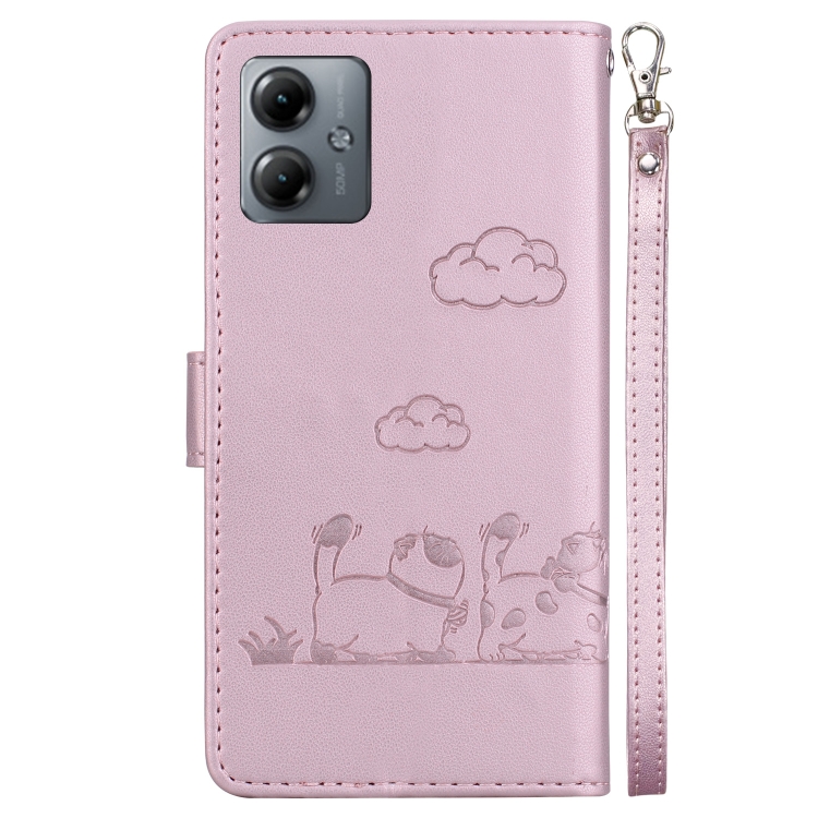 Funda de Cuero Rfid Motorola Moto G14 con Diseño de Gatos (Oro Rosa)