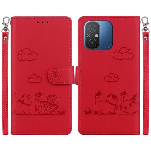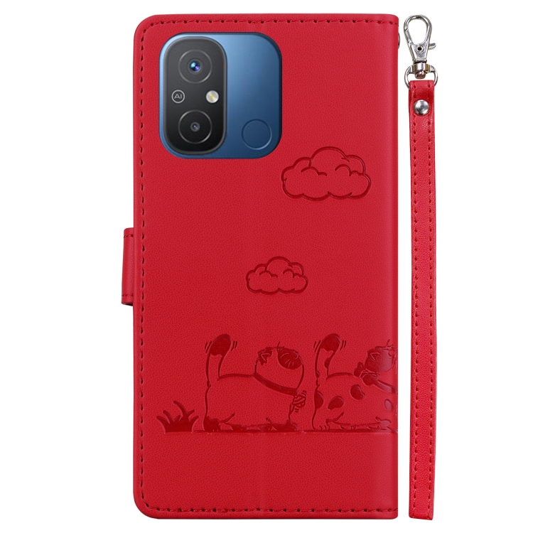 Funda de Cuero Rfid con Diseño de Gatos para Redmi 12C/11A (Roja)