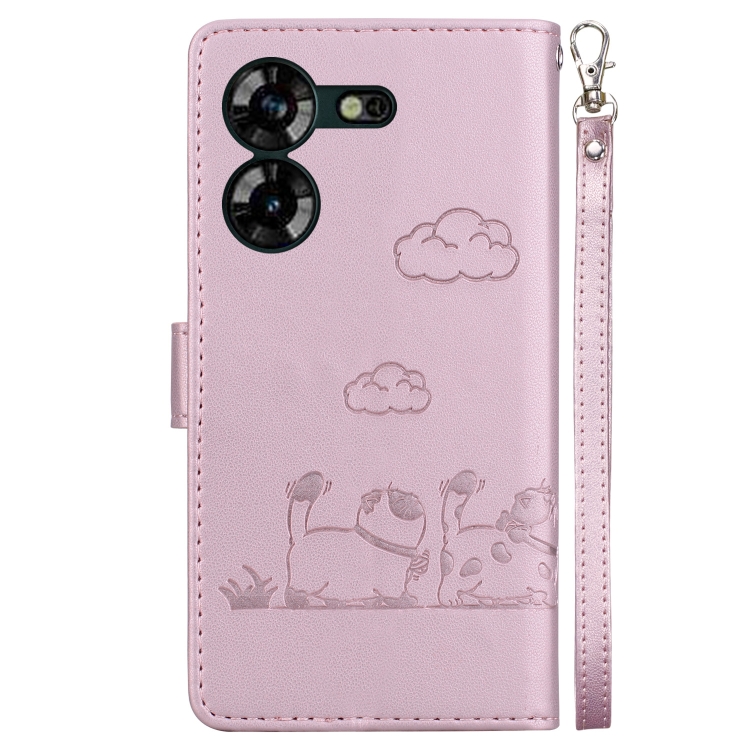 Funda de Cuero Rfid para Tecno Pova 5 con Diseño de Gatos (Oro Rosa)