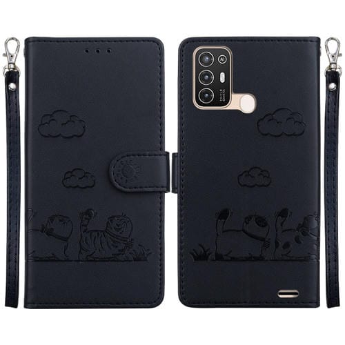 Funda de Cuero Rfid para ZTE Blade A52 con Diseño de Gatos (Negra)