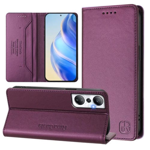 Funda de Cuero Rfid con Doble Pliegue y Succión Magnética para Infinix Hot 20 4G Rc01 (Violeta)