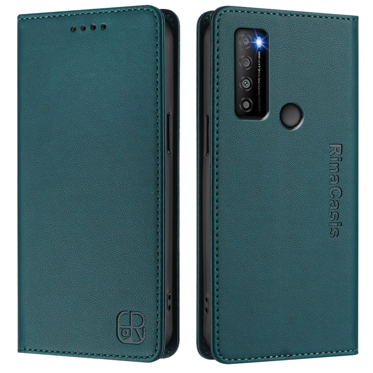 Funda de Cuero Rfid para TCL 30 Xl T701Dl Rc01 con Doble Pliegue y Succión Magnética (Verde Oscuro)