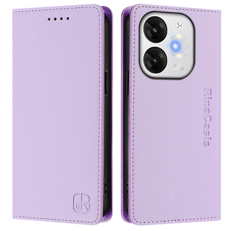 Funda de Cuero Rfid para Teléfono Itel A80 4G Rc01 con Doble Pliegue y Succión Magnética (Morado Claro)
