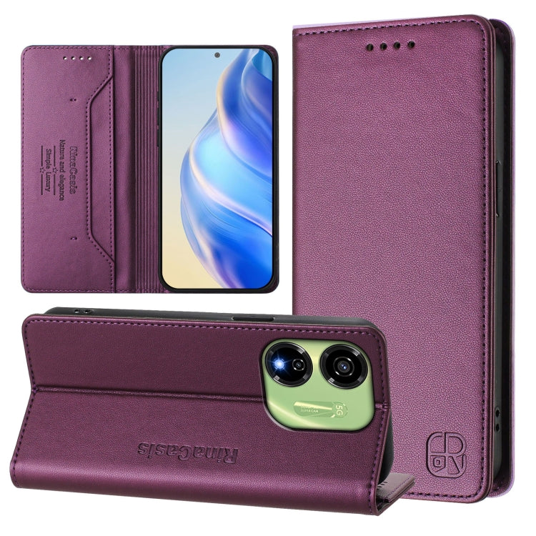 Funda de Cuero Rfid con Doble Pliegue y Succión Magnética para Itel P55 5G Rc01 (Violeta)
