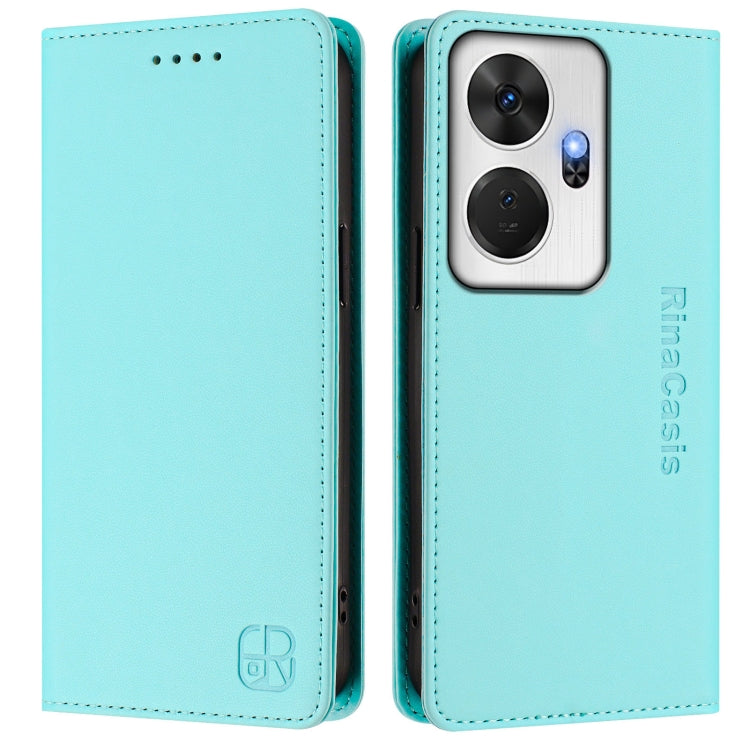 Funda de Cuero Rfid para Teléfono Itel P55+ Rc01 con Doble Pliegue y Succión Magnética (Verde Menta)