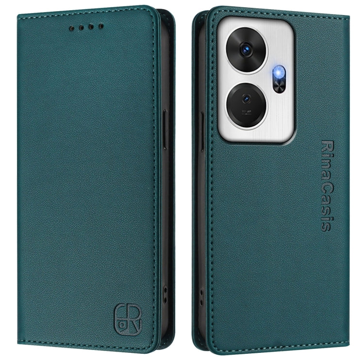 Funda de Cuero Rfid con Doble Pliegue y Succión Magnética para Teléfono Itel P55+ Rc01 (Verde Oscuro)